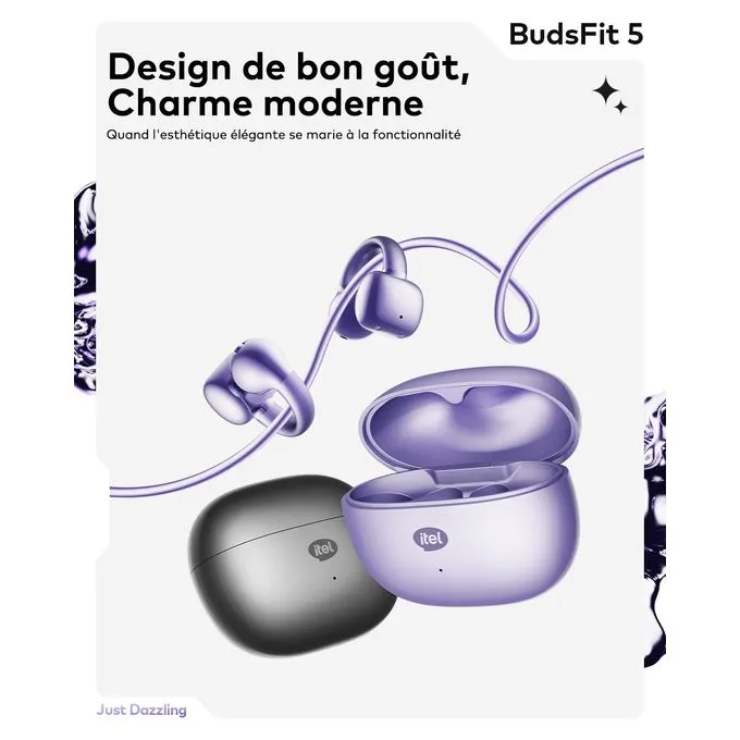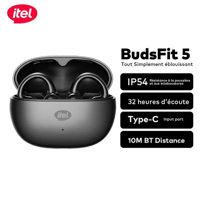 Itel Ecouteur Sans Fil BudsFit 5 Certifié IP54 GRIS Tout Simplement éblouissant Buds Fit 5