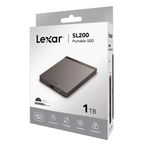 Stockez et accédez rapidement et en toute sécurité à votre contenu n’importe où avec le SSD portable Lexar SL200. Doté d’un style épuré et élancé et d’une finition haut de gamme, il offre des performances impressionnantes en déplacement, avec des vitesses allant jusqu’à 550 Mo/s en lecture et 400 Mo/s en écriture1.